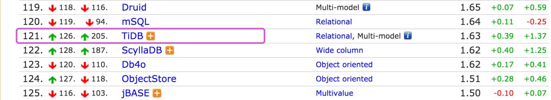 官网地址:https://www.pingcap.com/index.html,兼容 MySQL 协议和生态,TiDB 的目标是为 OLTP (Online Transactional Processing) 和 OLAP (Online Analytical Processing) 场景提供一站式的解决方案。从排名上看,增长速度还是比较快的。
