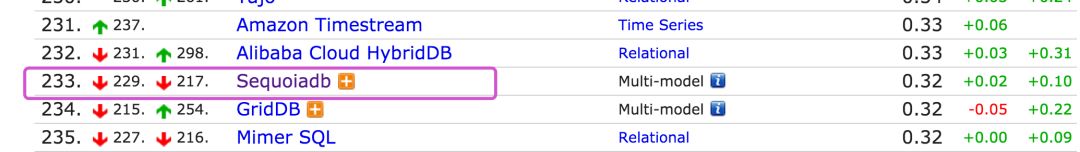 新版的SequoiaDB(巨杉数据库),http://www.sequoiadb.com/cn/,定位于金融级分布式关系型数据库,由于比较老牌,加上应用领域比较窄,知名度不是很高,要不是在db-engines的排名上发现上,我还真不知道有它的存在,市场份额也在不断的被其它存储取代。