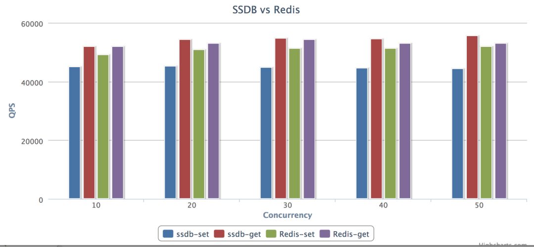 性能数据使用 ssdb-bench(SSDB) 和 redis-benchmark(Redis) 来获取.