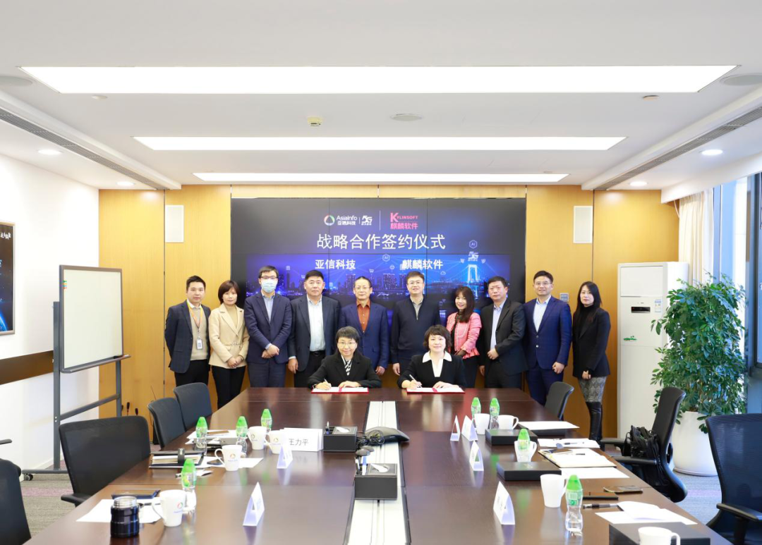 12月28日,麒麟软件有限公司(以下称“麒麟软件”)与亚信科技(中国)有限公司(以下称“亚信科技”)在京签署战略合作协议。双方将在创新融合、生态协作、资源共享等方面进行深度合作,共同推出联合产品与解决方案,提供更加稳定可靠、安全合规、性能调优的网信产品解决方案,共促我国网信产业新发展。