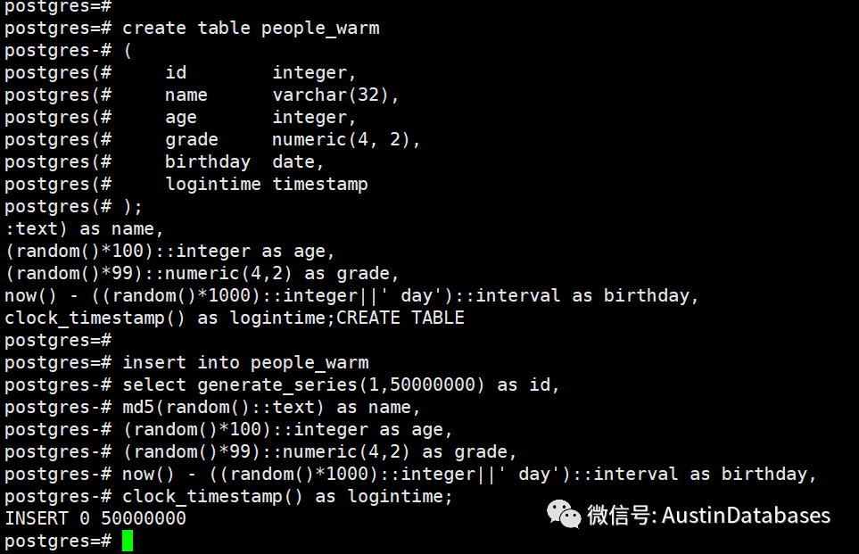 我们灌入5000万的数据到PG的数据库中。通过语句我们可以查出表在内存中的数据块的数量。