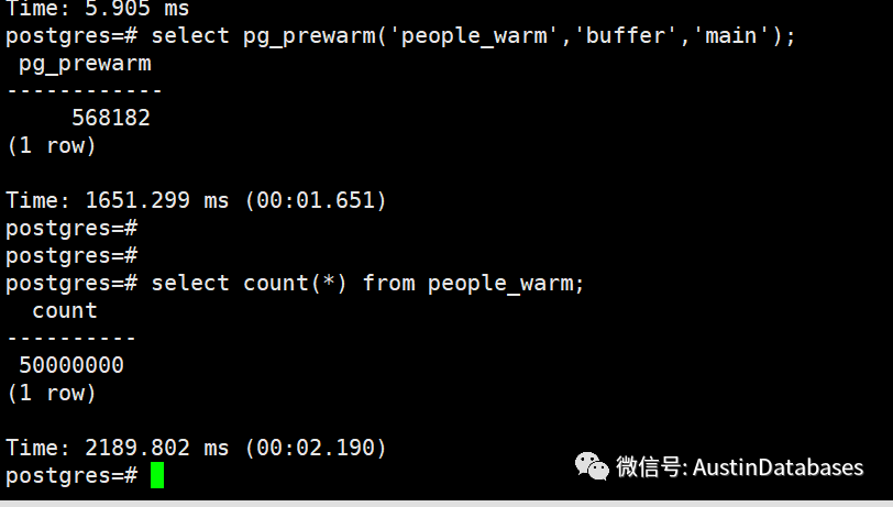 我们再次将数据清空。通过pg_prewarm 将数据加载进缓存中。