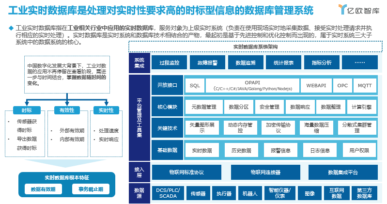 1. 亿欧结合业内对实时数据库公认的多个标准,对工业实时数据库提出准确定义。