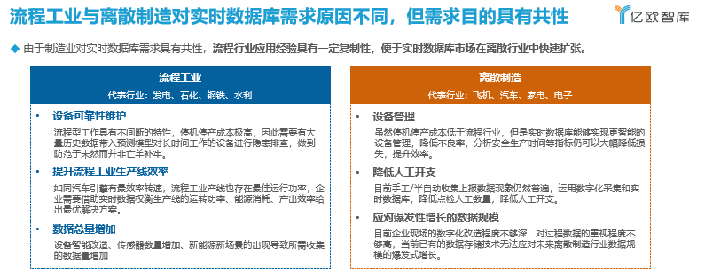 4. 流程工业与离散制造业虽然在制造工艺流程方面区别较大,但是对于实时数据库的需求类似,便于实时数据库厂商在未来快速覆盖离散制造行业市场。