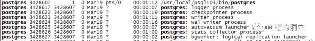 可以看出,和pg 9.6相比,除了kinbaseES多了一个logger process和一个bgworker:sysloglical supervisor外,其他的后台进程完全是一模一样的,连名字都没变。而如果和PG 10做个对比,就很有意思了: