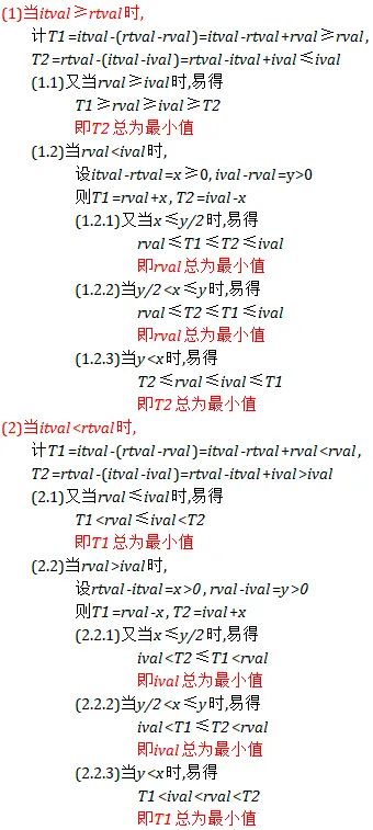casewhen rtval <= itval thenleast(rtval - (itval - ival), rval)when rtval > itval thenleast(itval - (rtval - rval), ival)end