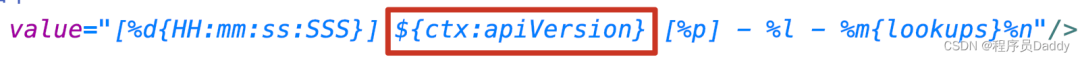 1、业务代码在日志规则中使用了${ctx:}来输入线程上下文中的变量。如 apiVersion