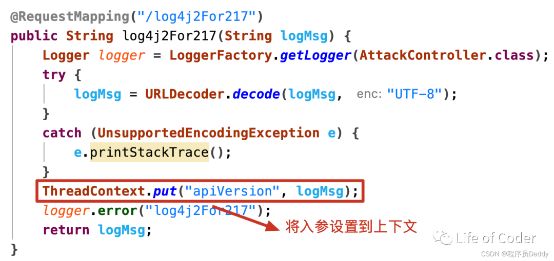 咱们在分析2.15.0版本中的漏洞时Log4j2中2.15.0版存在的漏洞剖析),已经知道ldap的lookup漏洞不仅在日志的消息解析中存在,同时在ctx(线程上下文)中也存在。而ctx的解析过程为: