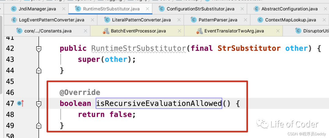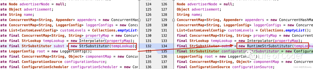 原来解析${}都是直接用的StrSubstitutor类,而新版中都所有日志规则中的解析直接加了一个StrSubstitutor的子类:RuntimeStrSubstitutor。