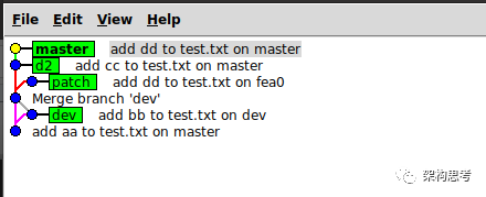 然后我提交了一次,分支图变成下图: