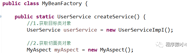 3.工厂类:用来将目标类和切面类结合起来生成工厂代理对象