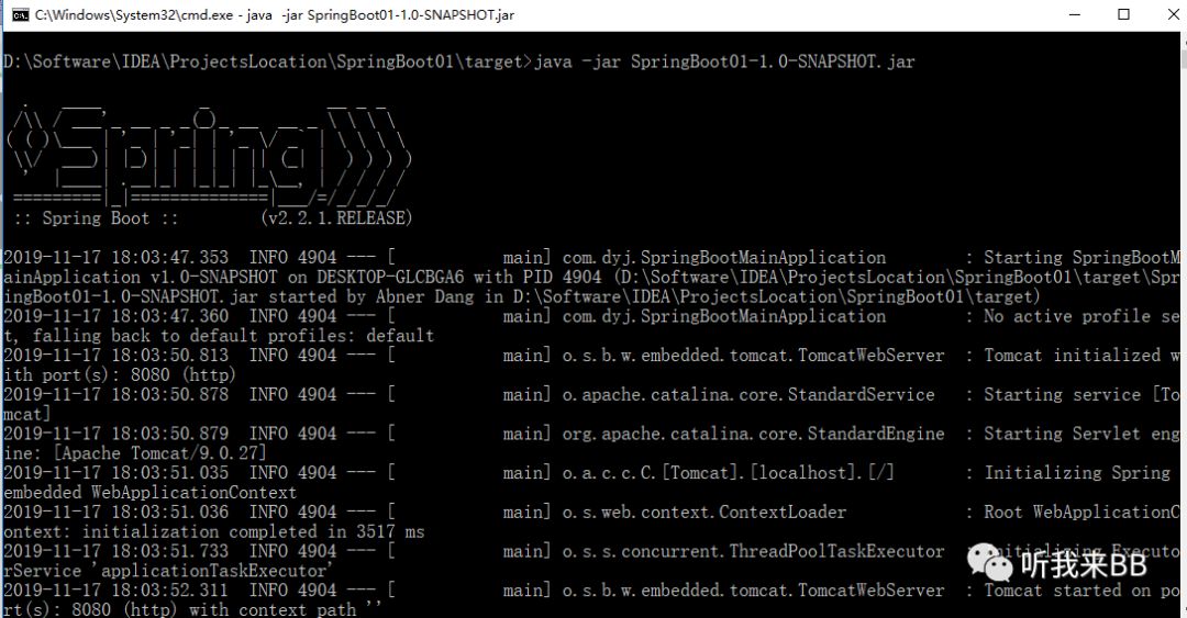 执行package命令会在项目中生成一个target文件夹,打成的jar包就在这里边,使用java -jar 命令执行jar文件