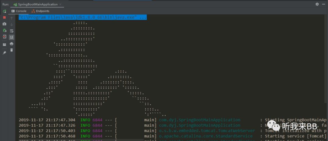 在resources目录下新建banner.txt文件,文件中自己定义banner的样式,重新启动如下,可以看到已经换成我们自己定义的样式了