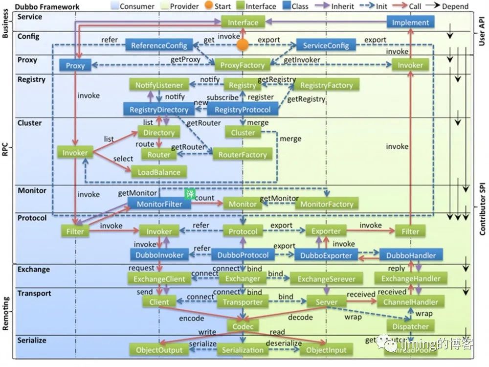 monitor:监控层。这一层主要负责监控统计调用次数和调用时间。