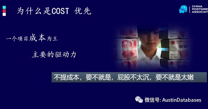 为什么是COST 优先,不光是软件的项目,各种的项目都要有产出比,所以这是成本的问题。那怎么在一个项目中节省成本,是非常重要的,一个项目或企业在使用一项技术的时候,时刻都要想到成本,大部分以技术为导向的技术工作者,容易忽略这个问题,或者接触不到这个层次上面的问题。