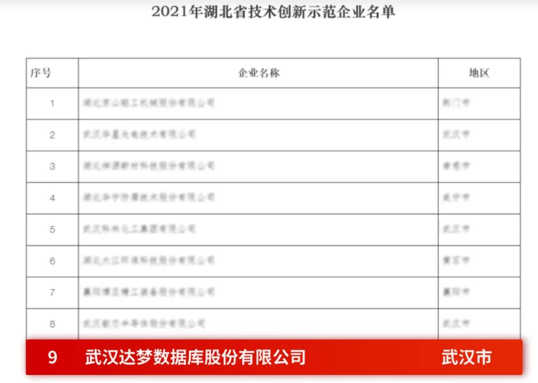“武汉达梦数据技术有限公司”获得由武汉东湖新技术开发区产业发展和科技创新局认定的“光谷瞪羚企业”称号,公司的创新能力、发展潜力得到官方认可。 ...... |