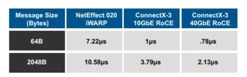 在Mellanox官网的测试结果当中,RoCE的时延基本只有iWRAP的1/5。