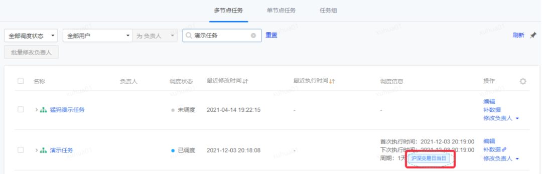 对于设置了调度日历的任务,在任务运维中心,也会有对应的标记显示。