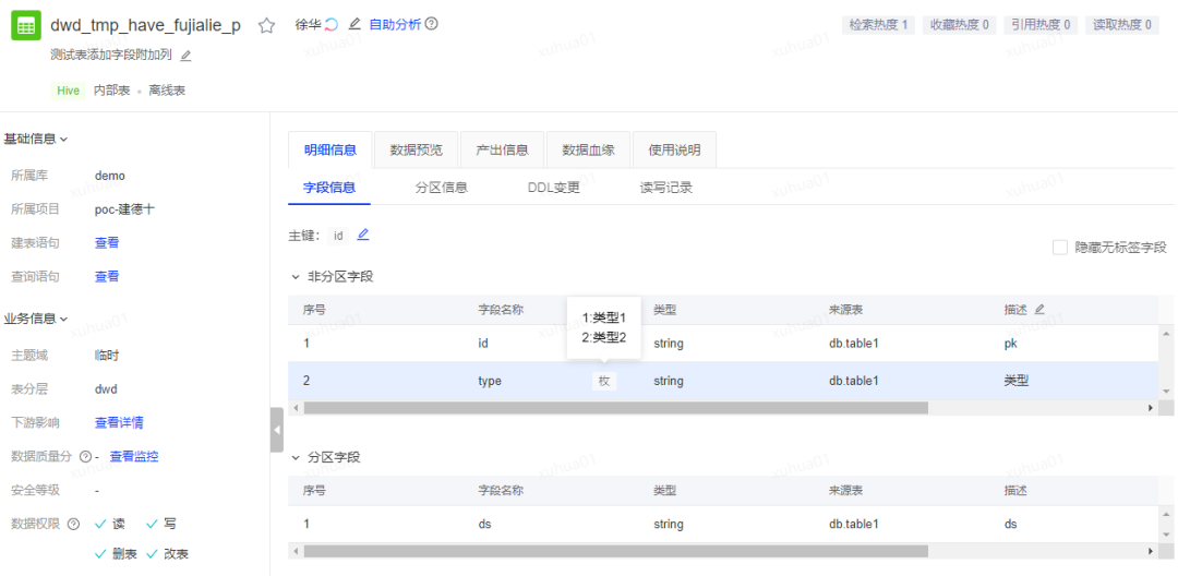 (1)表设计工单管理,新建表或修改表,支持对表字段设置“字段附加列”。该功能支持在新建表或修改表工单中,对不同分层的表设置不同的字段附加列,比如字段的“加工来源表”、“加工来源字段”等。