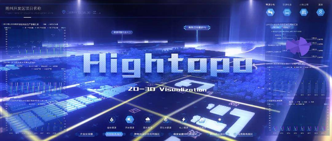 Hightopo可视化大屏以三维场景为基础,2D 数据面板为辅,数字化展现朔州开发区的交通情况、景区信息、管网信息、土地布局等情况,提高管理者对城市数据的掌控。例如园区内各种电力设施,交通枢纽,地标建筑,园区内地下管线,机动目标等位置数据实时展现。HT 三维可视化技术采用 B/S 架构,可通过 PC 、 PAD 或是智能手机,只要打开浏览器可随时随地访问三维可视化系统,实现远程监查和管控。