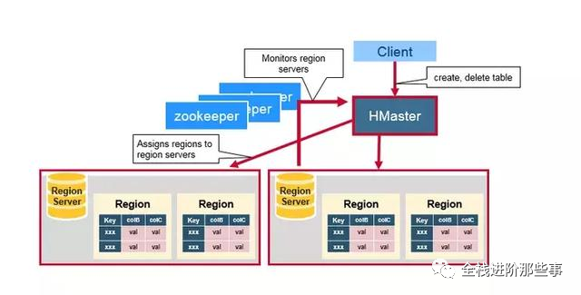HBase Master,负责 Region 的分配,DDL(创建,删除 table)等操作。