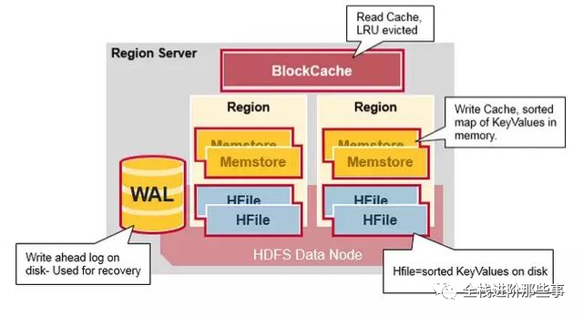 Region Server 运行在 HDFS DataNode 上,由以下组件组成: