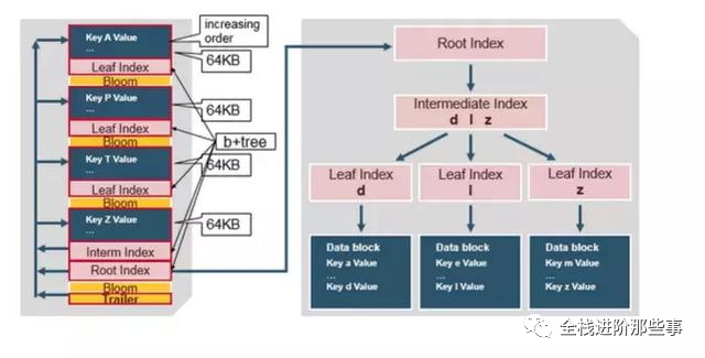 rowkey 指向 index,而 index 则指向了具体的 data block,以 64 KB 为单位。