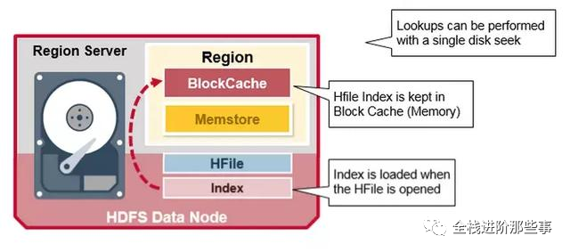 刚才讨论的索引,在 HFile 被打开时会被载入内存,这样数据查询只要一次硬盘查询。