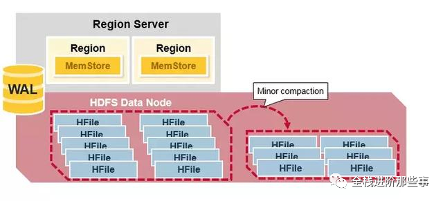 HBase 会自动合并一些小的 HFile,重写成少量更大的 HFiles。这个过程被称为 minor compaction。它使用归并排序算法,将小文件合并成大文件,有效减少 HFile 的数量。