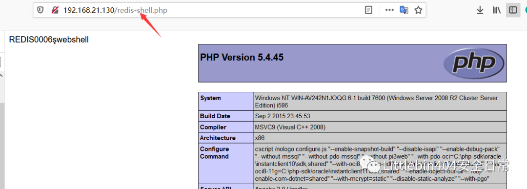 使用浏览器访问redis-shell.php,验证是否写入成功: