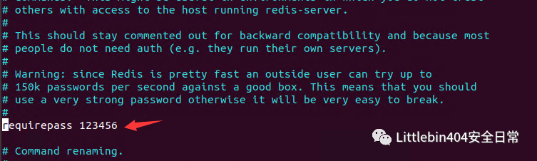 打开redis.conf配置文件,找到requirepass,然后修改如下: