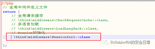 修改 /app/middleware.php 文件如下,删除SessionInit的注释: