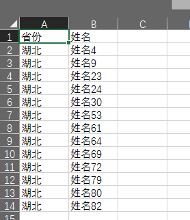 最终要完成的就是将这些数据按照省份分别保存在不同文件中,湖北.xls 中只保存湖北的人员名单,甘肃.xls 只保存甘肃的人员名单。