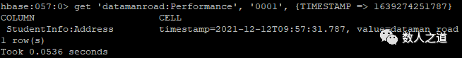 get 'datamanroad:Performance', '0001', {TIMESTAMP => 1639274251787}