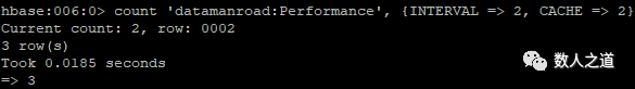 hbase:033:0> put 'datamanroad:Performance', '0003', 'StudentInfo:Age', '20'