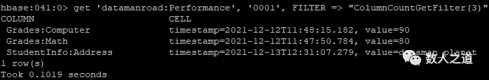 get 'datamanroad:Performance', '0001', FILTER => "ColumnCountGetFilter(3)"