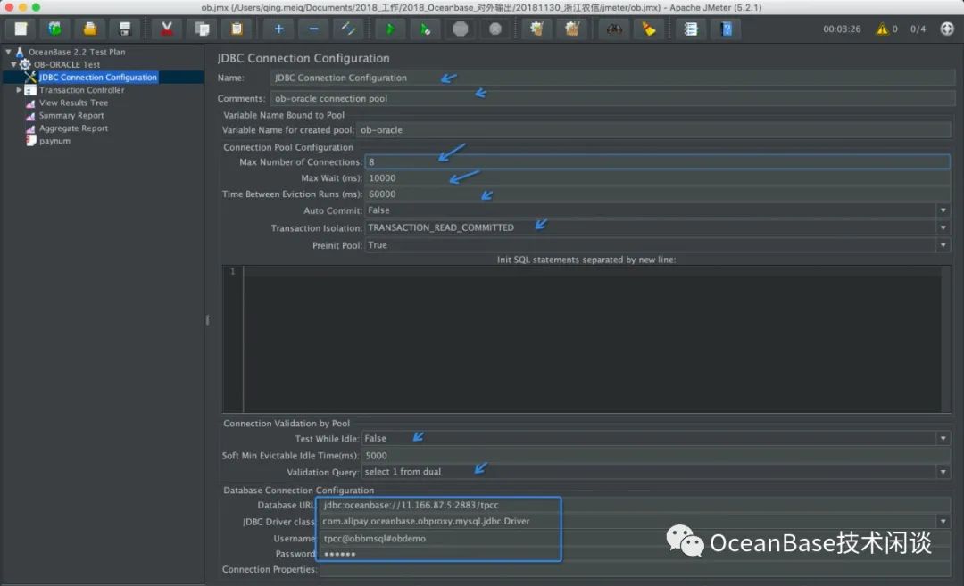 :这个指连接池里最多多少个连接。如果压测线程数远高于这个值,那么压测线程可能会需要等待这个连接池创建或返还数据库连接(即到OceanBase的连接)给它。如果等不到可能会报错。在这个环节,客户端压测线程拿不到连接,不一定跟OceanBase数据库有直接关系。在Java应用里面也同理。Transaction Isolation