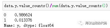 本文总计样本数量为7252,其中7155个样本是好客户,97个样本是坏客户。说明0和1的分布很不均匀,我们统计一下占比: