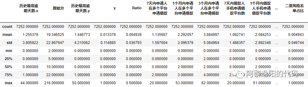 4.分析好坏客户的样本分布是否差别很大。可以把数据集分成标签为1和0的子集,分别看子集中describe的结果。