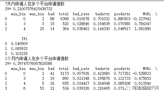 再用调用等频法算IV的函数,计算单个变量的IV值,并打印结果。