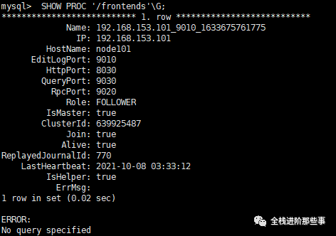 第二步: 查看FE状态: