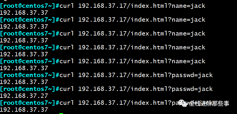 [root@mysql2 ~]# curl --cookie "SERVER-COOKIE=web1-27" http://192.168.37.27/index.html192.168.7.103[root@mysql2 ~]# curl --cookie "SERVER-COOKIE=web1-37" http://192.168.37.37/index.html