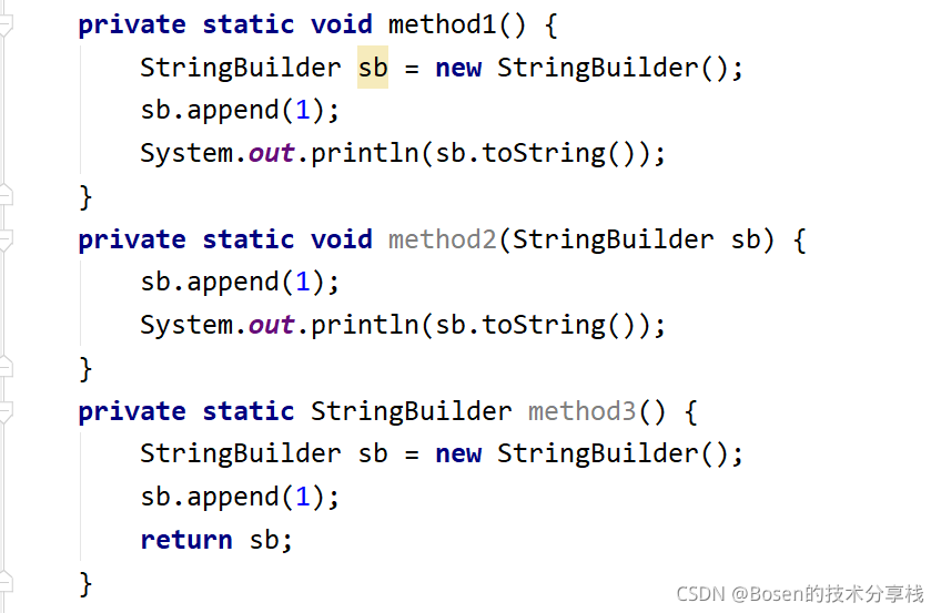 针对问题3,我们来写三个方法,并对三个方法中的StringBuilder