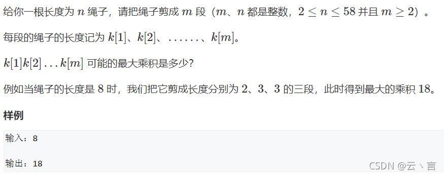 的绳子就变成了“可剪可不剪”。那究竟是“不剪了”得到的乘积大呢,还是“继续剪余下的这段”得到乘积更大?我们不知道,所以需要两种情况都计算一下进行比较。其中,“不剪了”得到的乘积是j * ( i - j )