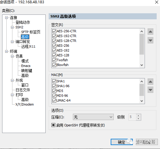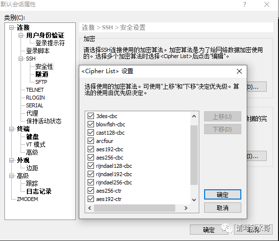 ssh -Q cipher#列出支持的密码ssh -Q mac#列出支持的MACssh -Q key#列出支持的公钥类型ssh -Q kex#列出支持的密钥交换算法