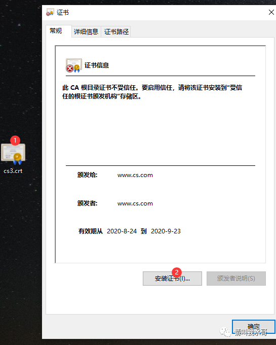 (这里haproxy只是进行代理转发)由于在访问的时候提示证书问题,所以手动导入证书后测试后成功.下载服务器上面cs3.crt证书文件到windows