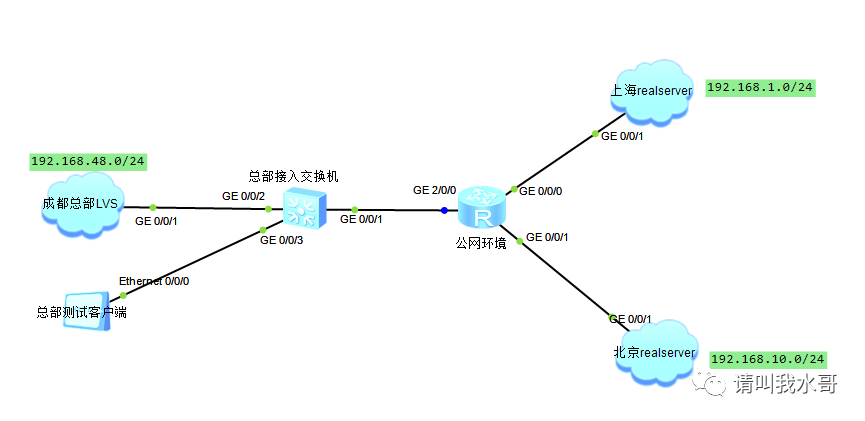 1) RIP、VIP、DIP全是公网地址(本实验模拟的都是各地域出口IP在IPVS上)