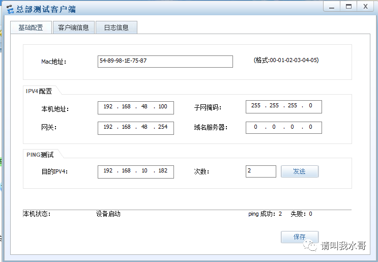 总部测试端配置如图: