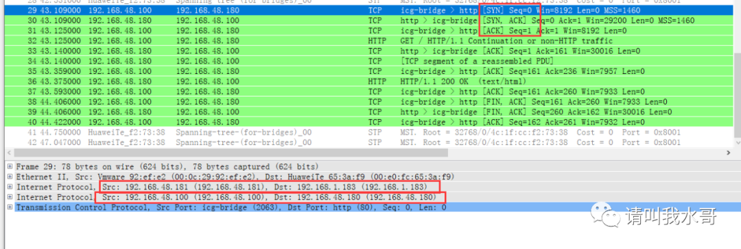 第二层: Src:192.168.48.181 Dst:192.168.1.183 (封装了第一层,并在外套了一层,这里就是封装的过程)