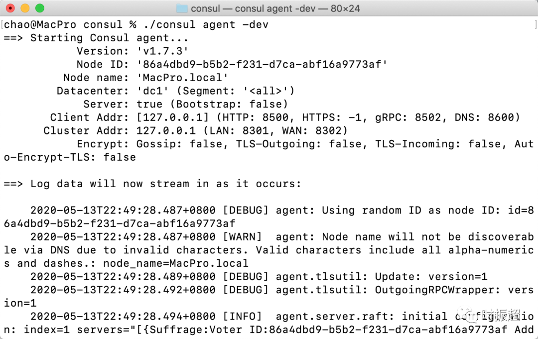 执行./consul agent -dev 启动